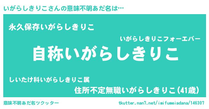 | 男性向けラノベタイトル風あだ名 | 『Re:いがらしきりこから始める異世界生活』 |