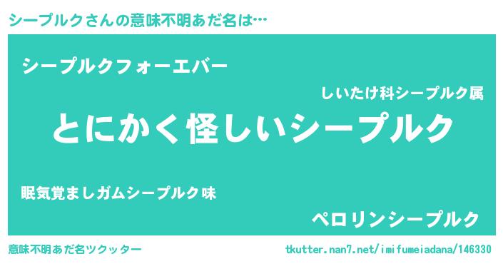 | 男性向けラノベタイトル風あだ名 | 『緋弾のシープルク』『シープルクの憂鬱』 |