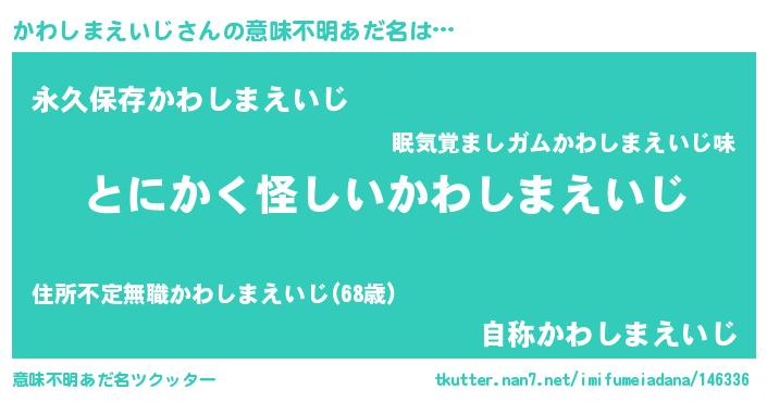 | ヘコむあだ名 | 『かわっちょ』『かわしまえいじ(笑)』 |