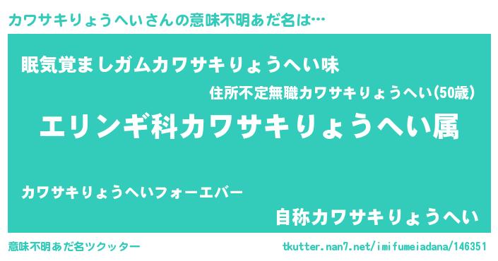 | 胡散臭い通販商品みたいなあだ名 | 『100人中100人が認めたイリジウム磁石…その名も「カワサキりょうへい」』 |