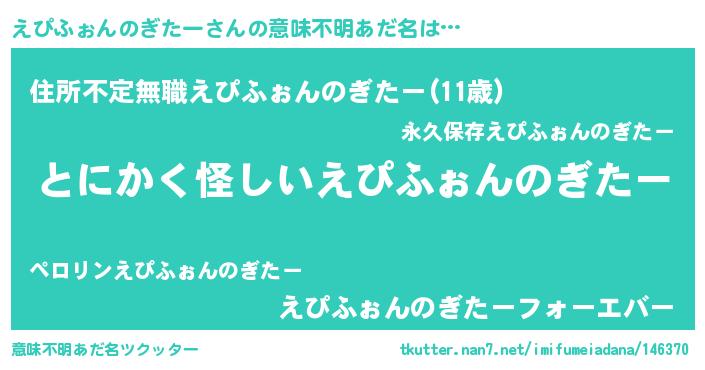 | 女子向けラノベタイトル風あだ名 | 『えぴふぉんのぎたーの卵を拾いまして』 |