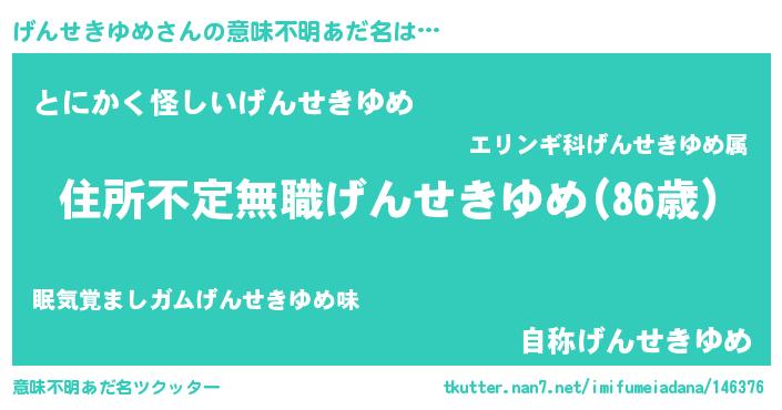 | ポケモン風あだ名 | 『ゲーンイ』『ヒゲンセキユメ』 |