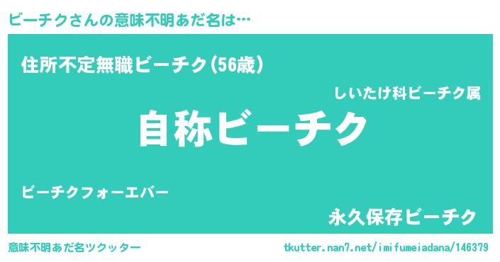 | 男性向けラノベタイトル風あだ名 | 『Re:ビーチクから始める異世界生活』 |