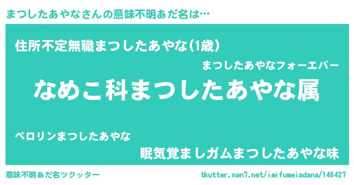 | 男性向けラノベタイトル風あだ名 | 『転生したらまつしたあやなだった件』 |