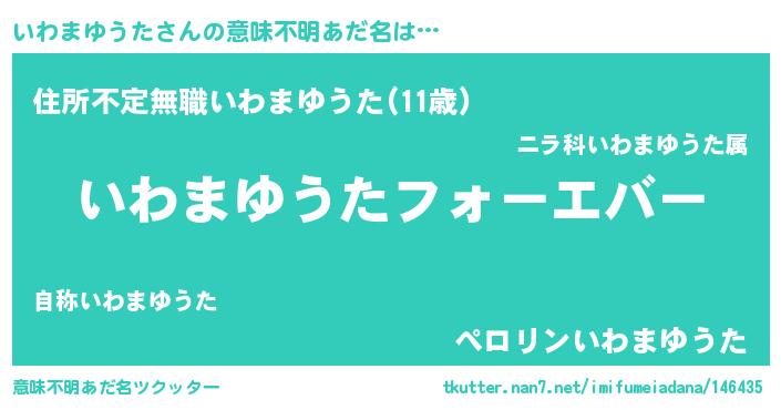 | 男性向けラノベタイトル風あだ名 | 『やはりいわまゆうたの青春ラブコメはまちがっている 』 |