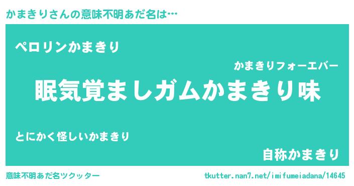 | 自動車の名前っぽいあだ名 | 『カンR』『フェカーマ』『カマティマ』 |
