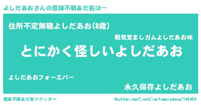 | ヘコむあだ名 | 『よしお』『よしだあお(遠い目)』 |