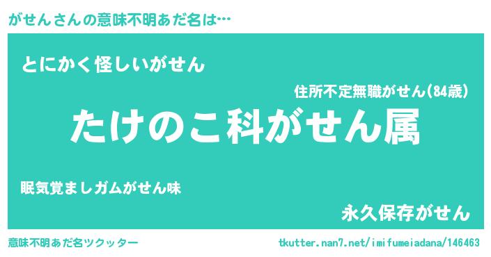 | 男性向けラノベタイトル風あだ名 | 『転生したらがせんだった件』 |