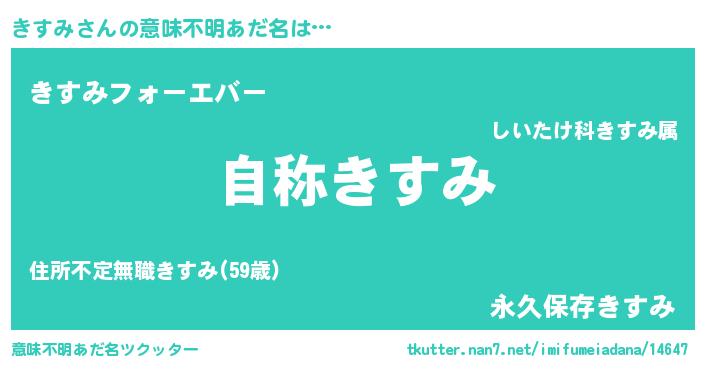 | 男性向けラノベタイトル風あだ名 | 『Re:きすみから始める異世界生活』 |