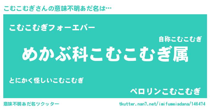 | 肩書あだ名 | 『こむこむぎ少尉』『こむこむぎ国家主席』 |