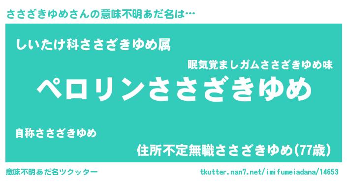 | ヒーロー風カッコイイあだ名 | 『スーパーササザキユメ』『仮面ササダー』 |