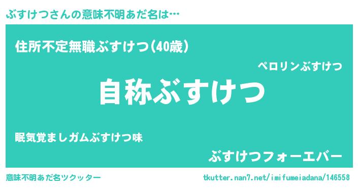 | 男性向けラノベタイトル風あだ名 | 『うちのぶすけつが世界を掌握している!』 |