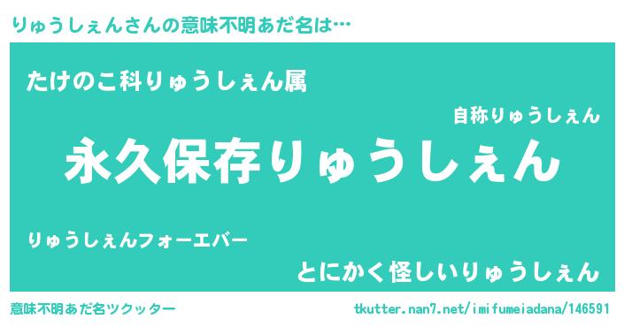 | 男性向けラノベタイトル風あだ名 | 『うちのりゅうしぇんが世界を掌握している!』 |
