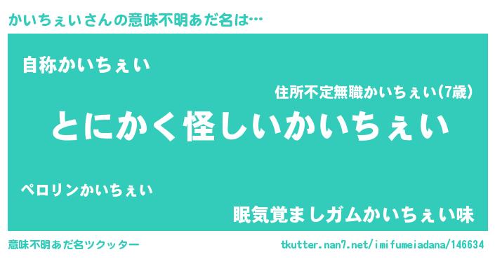 | 男性向けラノベタイトル風あだ名 | 『かいちぇいの嫁は女の子じゃないと思った?』 |
