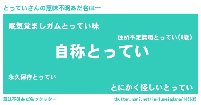| 欧米人風あだ名 | 『とってい・ステッグマイヤー』 |