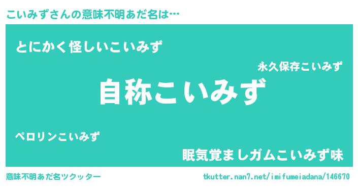 | 女子向けラノベタイトル風あだ名 | 『闇のこいみず』『こいみずは平凡を望む』 |