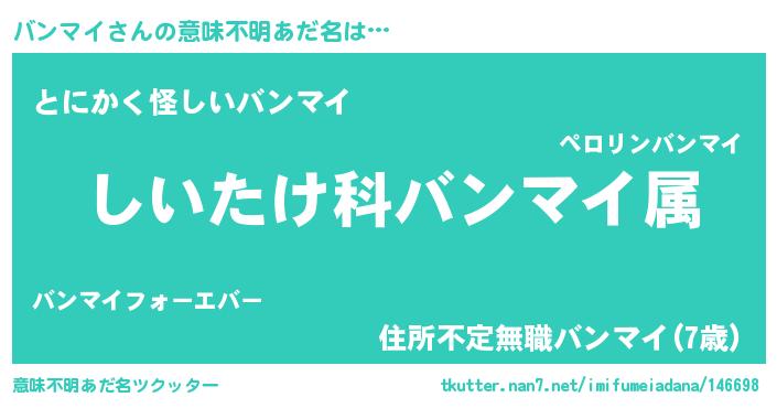 | 男性向けラノベタイトル風あだ名 | 『バンマイスレイヤー』『緋弾のバンマイ』 |