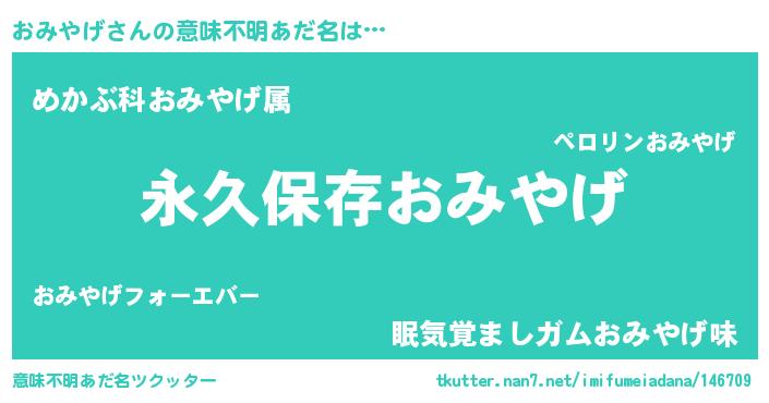 | 胡散臭い通販商品みたいなあだ名 | 『来世でも幸せになれる水素水…その名も「おみやげ」』 |