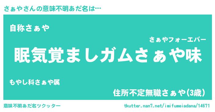 | ヒーロー風カッコイイあだ名 | 『慈愛の使者さぁや』『最強戦士サァヤ』 |