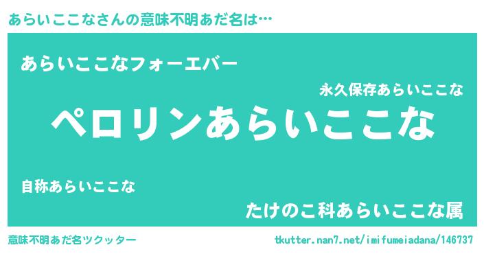| 欧米人風あだ名 | 『あらいここな・ステッグマイヤー』 |