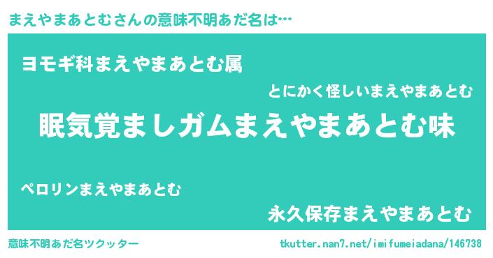 | 男性向けラノベタイトル風あだ名 | 『まえやまあとむに滅ぼされるだけの簡単なお仕事です』 |