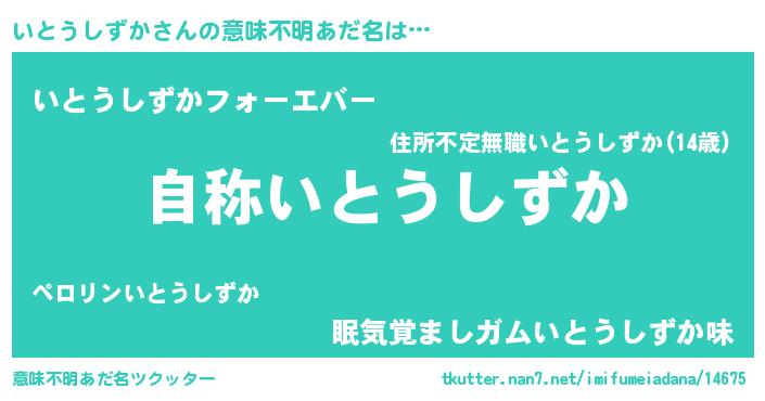 | 男性向けラノベタイトル風あだ名 | 『Re:いとうしずかから始める異世界生活』 |