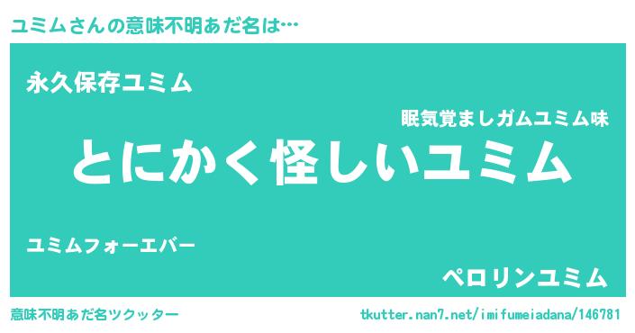 | 胡散臭い通販商品みたいなあだ名 | 『信頼と実績のサプリメント…その名も「ユミム」』 |