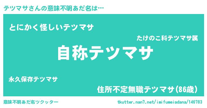 | 男性向けラノベタイトル風あだ名 | 『Re:テツマサから始める異世界生活』 |