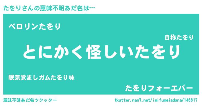 | 胡散臭い通販商品みたいなあだ名 | 『信頼と実績のサプリメント…その名も「たをり」』 |