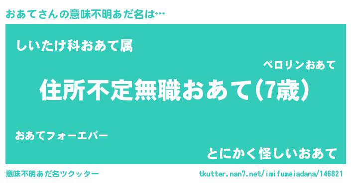 | 男性向けラノベタイトル風あだ名 | 『おあてに滅ぼされるだけの簡単なお仕事です』 |