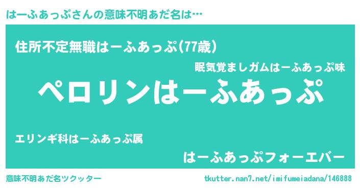| 胡散臭い通販商品みたいなあだ名 | 『必ず成功する水晶球…その名も「はーふあっぷ」』 |