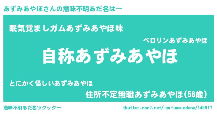 | 欧米人風あだ名 | 『アンジェラ・あずみあやほ』 |
