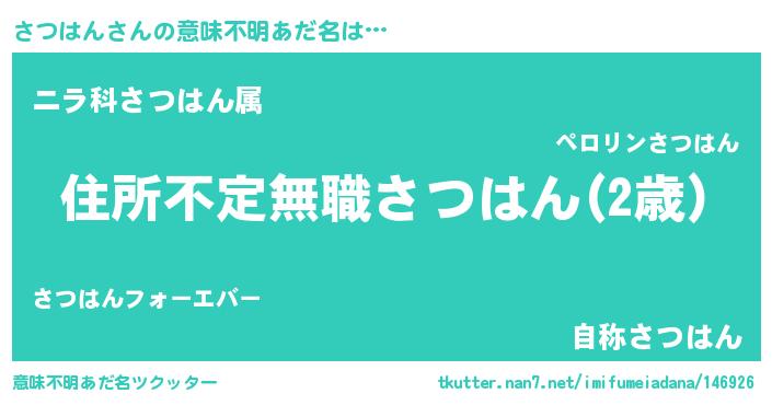 | 男性向けラノベタイトル風あだ名 | 『この素晴らしい世界にさつはんを!』 |