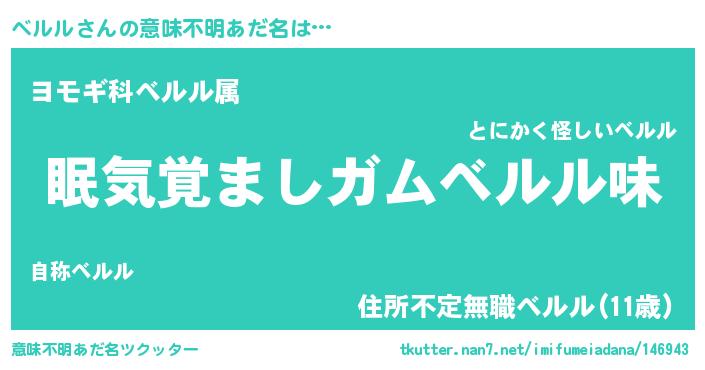 | ヘコむあだ名 | 『ベルお』『ベルル(爆)』『豆乳』 |