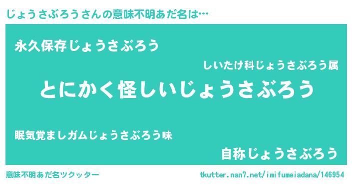 | 男性向けラノベタイトル風あだ名 | 『じょうさぶろうの嫁は女の子じゃないと思った?』 |