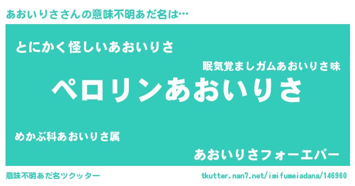 | 胡散臭い通販商品みたいなあだ名 | 『億万長者になれるブレスレット…その名も「あおいりさ」』 |