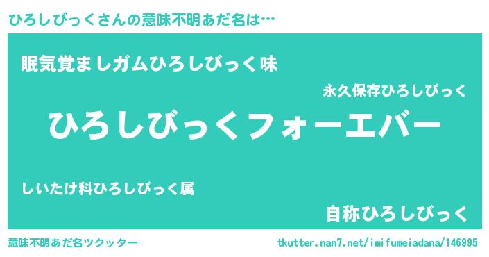 | 女子向けラノベタイトル風あだ名 | 『ひろしびっくの雑貨屋さん』 |