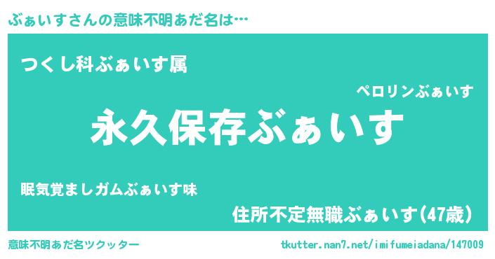 | 男性向けラノベタイトル風あだ名 | 『ぶぁいすという概念が存在しない退屈な世界 』 |