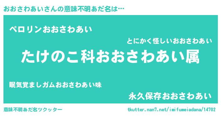 | 男性向けラノベタイトル風あだ名 | 『転生したらおおさわあいだった件』 |