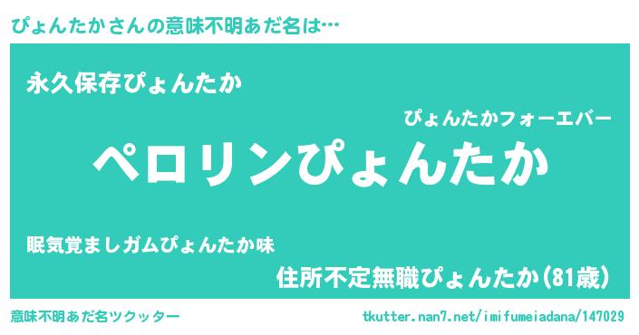 | ヘコむあだ名 | 『ぴょにー』『ぴょんたか(震え声)』 |