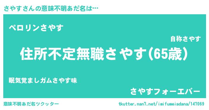 | ヒーロー風カッコイイあだ名 | 『仮面サヤダー』『スーパーサヤス』 |
