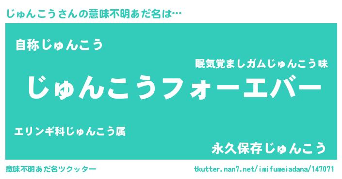 | ファンタジー風あだ名 | 『エターナルジュンコウー』『ゼジュトゥ』 |