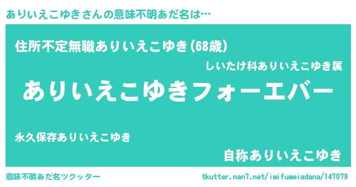 | ファンタジー風あだ名 | 『エターナルアリイエコユキー』 |