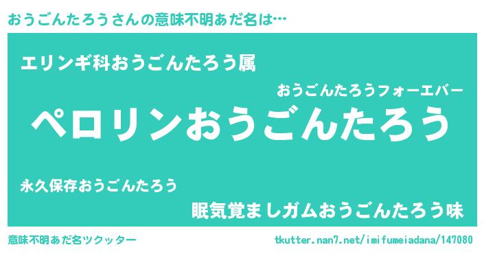 | 男性向けラノベタイトル風あだ名 | 『オウゴンタロウアートオンライン』 |