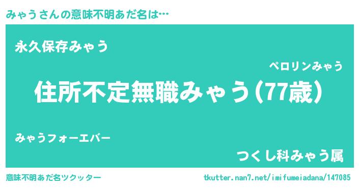 | ポケモン風あだ名 | 『ミーャイ』『ゼニミャ』『ミャゴンZ』 |