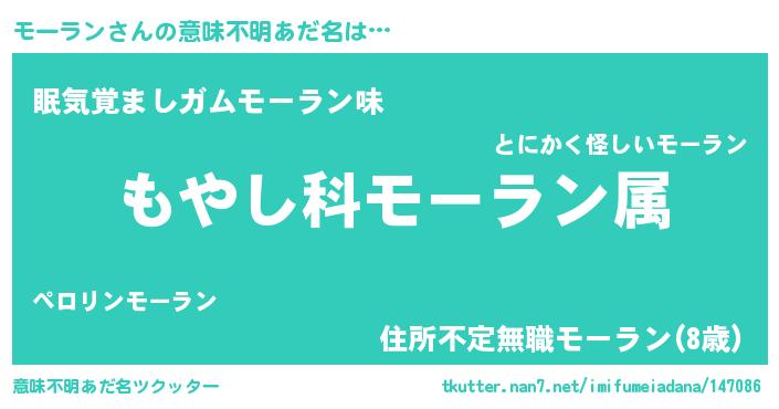 | 男性向けラノベタイトル風あだ名 | 『転生したらモーランだった件』 |