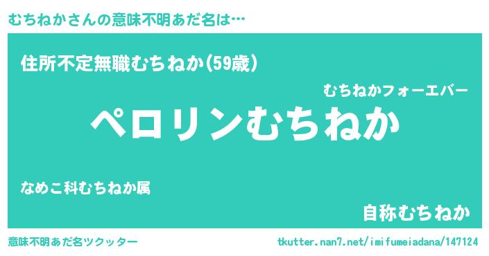 | 欧米人風あだ名 | 『むちねか・ステッグマイヤー』 |
