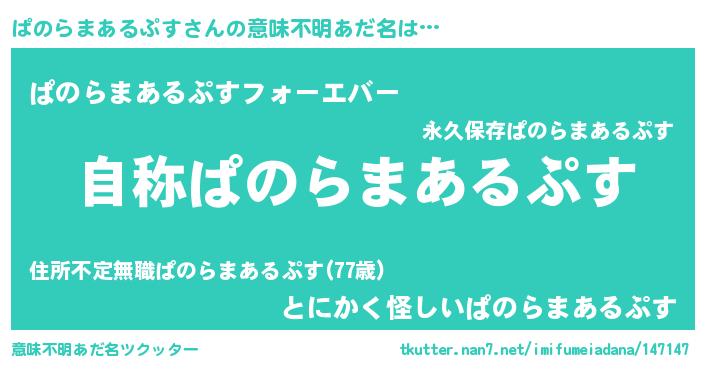 | 伝説のあだ名 | 『最強の陰陽師ぱのらまあるぷす』 |