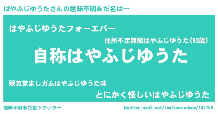 | 男性向けラノベタイトル風あだ名 | 『Re:はやふじゆうたから始める異世界生活』 |