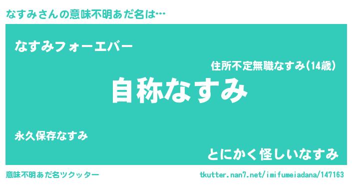 | ヒーロー風カッコイイあだ名 | 『ウルトラ戦士ナスミ』『魔戒騎士ナス』 |